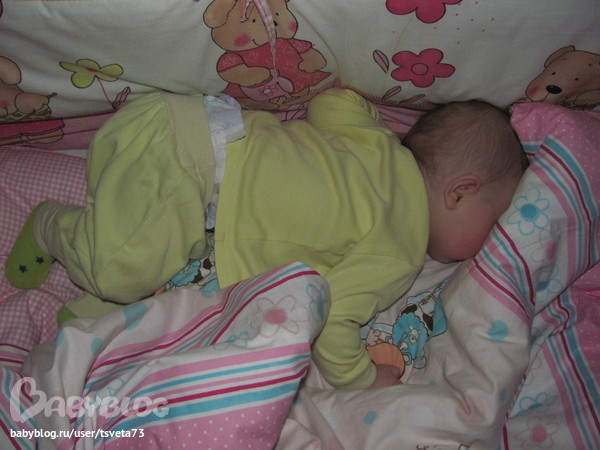 Девочки пост редактирую фото только сделал так сказать "ночной сон" клала спать как обычно голова на подушке... через полтора часа результат - ноги на подушке, а голова в ногах при этом когда она меняет положение тела немного плачет но во сне.....