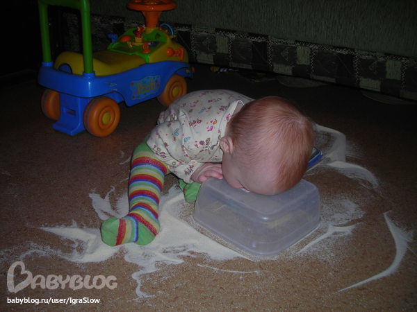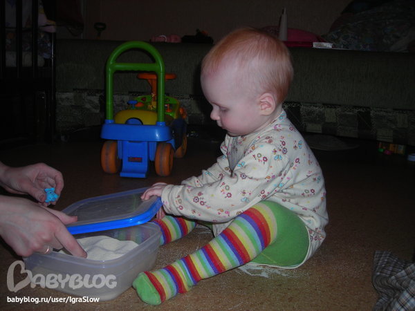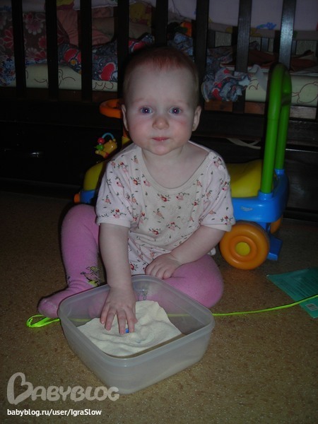 Мама досталаприпасенную специально для этой цели манку и давай развивать!