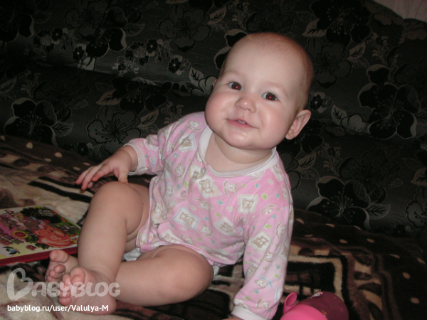Никаких крупных подвигов за эти месяцы не свершили - сидеть, стоять, ползать хорошо умели уже, а сейчас отточили свои умения до уровня мастерства. Стоять без опоры можем секунд 5, но только если забудем, что не держимся ни за что. По своей воле попыток стоять не опираясь ни на что даже не думаем совершать, что уж говорить о попытках ходить, даже мыслей таких у дочки, видимо, нет. Ползает со скоростью метиора. Зубов у нас 6, больше месяца нас новые зубы не беспокоят. Кусаемся своим богатством просто жутко, особенно жутко, если во время еды(((