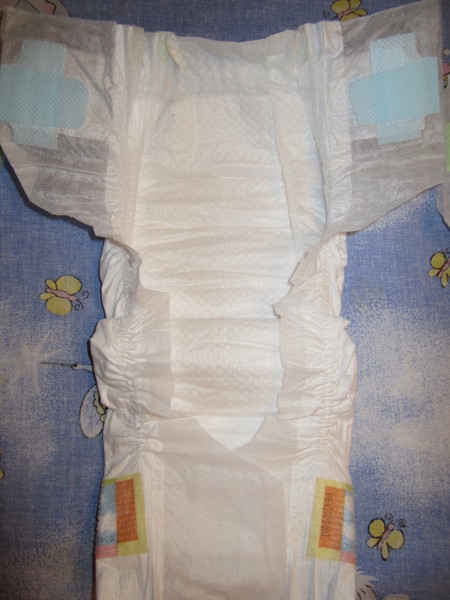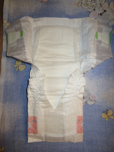 Подкладка внутри мягенькая, пористая, сотообразная, сику впитывает на ура, каку конечно похуже. Резинок на талии нет. Липучки многораз, но жестковаты и узкие. Так же считаю жестковатыми резинки на ножках. На самом памперсе картинки скудны и однообразны в размере 82шт. в пачке... Иными словами все заичьи головы одинаковые.