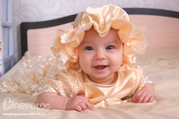 ХвастаемсяКак быстро летит время... Еще недавно она была такой малюсенькой крошкой, которая все время спала и просыпалась, что бы покушать... Сейчас же с каждым днем она радует нас своими новыми достижениями все больше и больше. К 5 месяцам мы научились переворачиваться с живота на спину и обратно (пока так и передвигаемся, катаясь мячиком по всей кровати). Вчера пару раз получилось встать на четвереньки... Вносим разнообразие в рацион - кушаем пюрешки и нам они очень нравятся. У нас уже 2 зуба. Соски категорически не приемлем - ну нам и так хорошо живется)) Вообщем растем и радуем всех вокруг)) чего и вам желаем! И свежее фото...