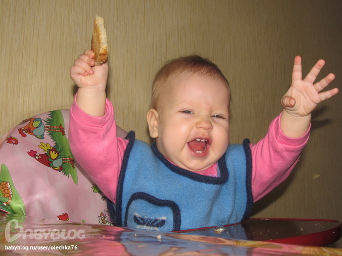 Хвастаемся5 февраля Аленке было 10 месяцев. Как-то быстро месяц пролетел. Ходили в поликлинику - весим 9200 и рост 72, по весу почти не набираем, врачговорит, потому что болели и зубы шли. Кушаем овощи (картошка, морковь, тыква, кабачок, капуста всякая, лучок), кашу (овсянку), мясо (курица и говядина) - это все с удовольствием. А с боем у нас идет творожок с кефиром, банан ???? (до сих пор удивляюсь), гречкой плюемся. Яблоко под настроение. Покупные фруктовые пюрешки - тоже плюемся. Гурман, одним словом. На днях буду пробовать дать рыбу, посмотрим.