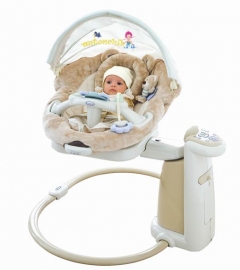 у нас тоже такой же укачивающий центр, перестала где то 9300, но она в ней особо не каталась ёй просто интересно там сидеть, я поэтому сняла само кресло на пол и она там сидит :)