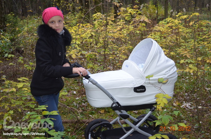 на прогулке,старшая дочка раньше очень любила катать коляску,сейчас уже реже проявляет желание,