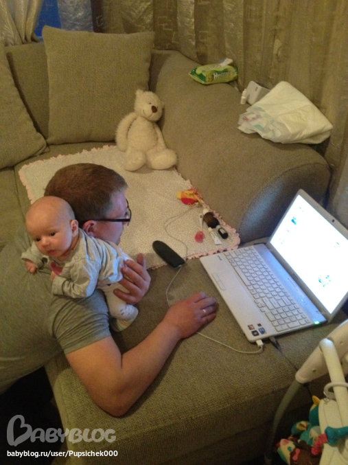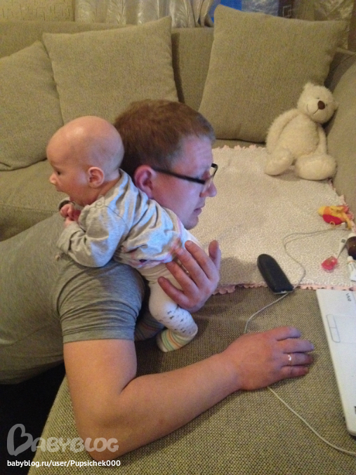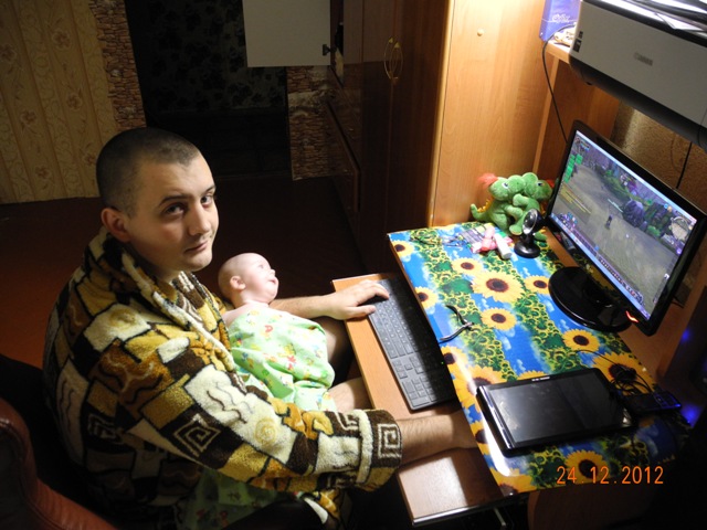У нас папа игроман, но с появлением Тимы, к нему садится и с ним играется, сидит за компом, когда тот спит..)