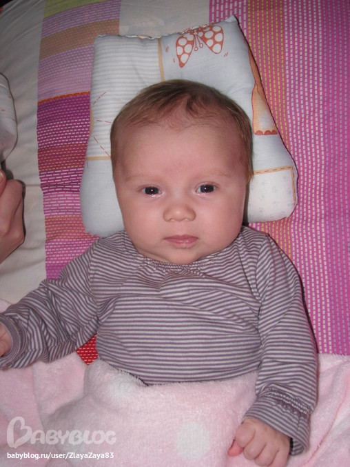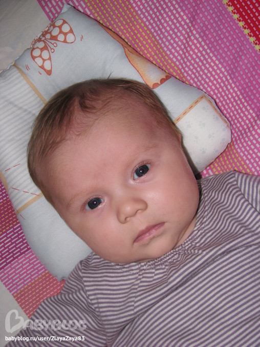 Из умелок: очень хорошо держим голову, плаваем в ванной с кругом (при этом обожает нырять в пену))))), пытается перевернуться на бок с живота, любит мобиль, почти не реагирует на погремухи (как то они с зайкой не подружились), улыбается не очень много, дама унас серьёзная)))), не много гулит (в основном аааа, бу, гу)
