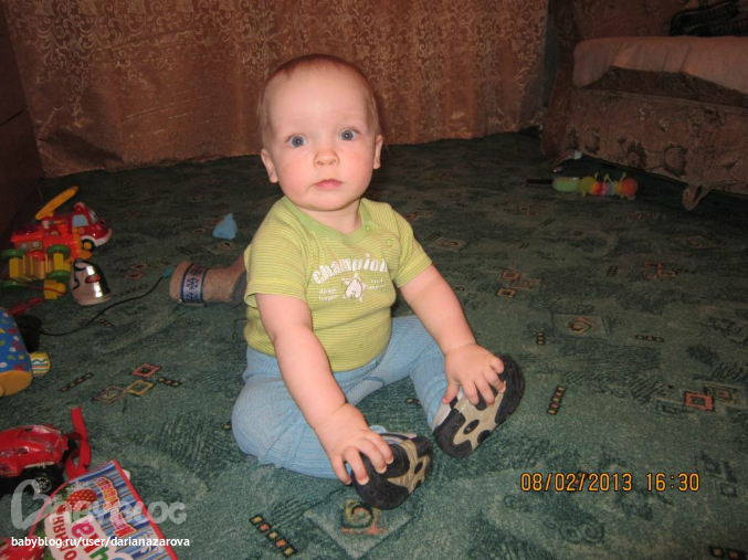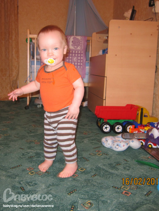 Уже годик. Наши выпускникиНу вот и подходит к концу наш первый год жизни! На пороге первый день рождения))) Пойдем в ресторан с родителями, широко отмечать не будем. Аркаша уже давно ходит, даже пытается бегать в припрыжку. Лапочет постоянно, особенно по утрам, на своем тарабарском языке. Говорит те же слова, что и раньше, некоторые более осознанно (деда, баба, папа, туда, что это-кто это), много повторяет. Любит читать книжки (разглядывать и спрашивать), строить пирамидку, играть с конструктором, мячиком, обнимать мишку и показывать нос и глазки, в валенки засовывает и достает игрушки или соску, любит играть с разными коробочками, открывать шкафы и ящики.