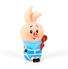 В игрушке нет самой «пищалки», издающей громкий звук, но при нажатии Пятачок слегка свистит, на что малышка очень хорошо реагирует – ведет взгляд за сказочным поросенком, поворачивает головку. Плюс к зрению и слуху здесь прибавляется осязание – из игрушки при нажатии выходит воздух, и когда я подношу игрушку, например, к щечкам или ушкам и нажимаю на нее, крошка от удивления расширяет глаза, открывает ротик и улыбается.