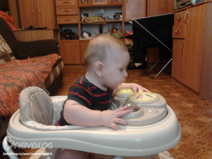 забавный малыш!)а нам запретили ходунки, сказали это вредно. но за то маме удобно