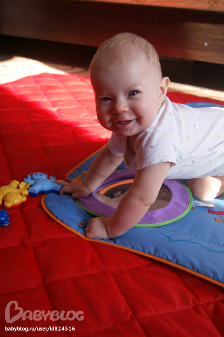зеркало мы очень любим, смотрится когда - сразу улыбаться начинает, ну прям настоящая девочка-девочка)))