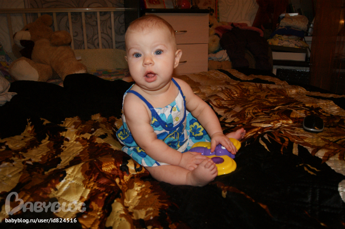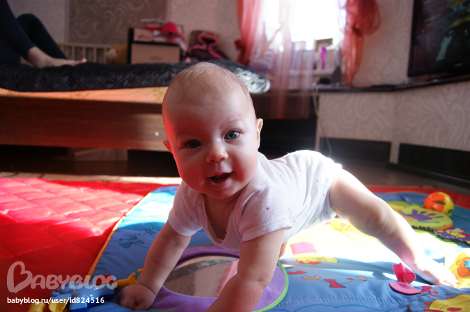 ЭмоцииВот и пролетели 6 месяцев, моя девочка уже совсем большая! Она уже умеет ползать на четвереньках, откликается на свое имя, улыбается всем вокруг)), вовсю пытается сидеть, и очень любит стоять на ножках. Кушает мамино молоко, пюрешки овощные, обожает мандарин)), иногда пьет вкусный сок и пробует вкусности которые кушают мама с папой)), но только капельку! Сколько весим и какой рост пока точно не знаю, на прием 7го числа, но могу сказать, что из комбезиков, которые на рост 68 мы уже давно выросли. А еще у Ани есть уже 2 зубика, которые мы каждый день чистим и эта процедура ей очень нравится))