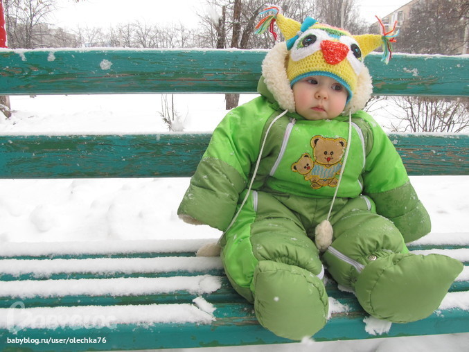 сидит на лавочке сама! умница! моего так низззяяяя... он сразу иили ползет или падает) ему бежать) шапка смотрю глубоко садится) может еще на осень будет)