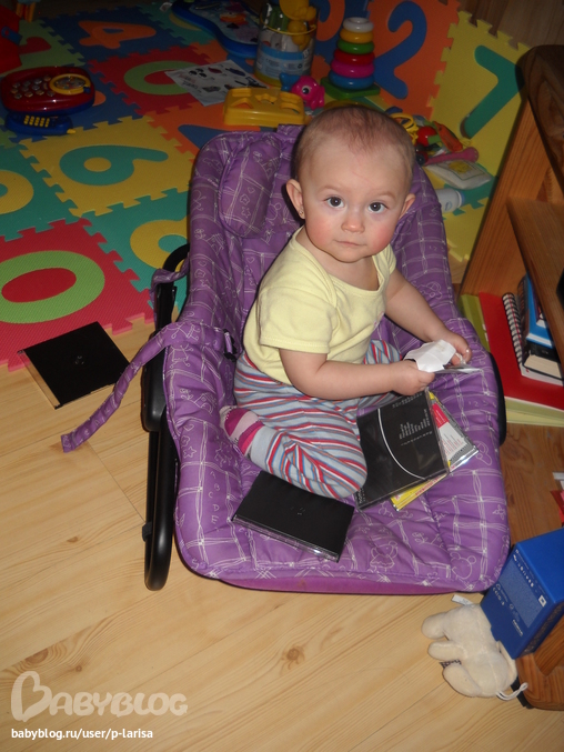 Растем быстро и здорово. Ползает везде, встает на ножки везде, обожает ходить за ручки, носится как угорелая, как будто шило в попке ))) Начинает любить играть в игрушки, находим любимую. Кидаем, швыряем все что только видим, до чего дотягивеамся, все несем в свой детский уголок ))) Наводим "порядок" везде.