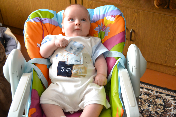 Мы уже смеемся, радуем маму и пап каждый день улыбкой с утра. Обожает прыгать на фитболе. Но пока еще полностью ручной ребенок. В кроватке днем спать отказывается, даже если спящего кладешь, минут через 5 уже просыпается. Блин, и как его приучить.... Уе выработался более менее режим. Ложимся спать в 21.00,-21.30, просыпаемся в 7-7.30 утра. За ночь кушаем 2-3 раза. В связи с этим у мен теперь небольшая проблема. Точнее большая- молока приливает много, а ночью кушаем меньше теперь, грудь потекла. И как с этим бороться? Сцеживаться не хочется, чтоб не спровоцировать еще больший прилив.