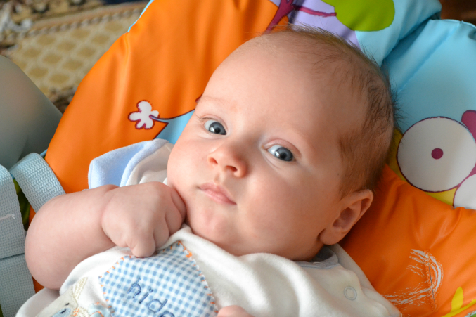 Ходили к неврологу и к педиатру. У невролога:по УЗИ у нас признаки увеличения межлобной щели на 1 мм. Сказала, не страшно, это еще последствия гипоксии при родах. Посмотрела моего толстячка))) Сказала, что слабовата у нас еще шейка немножко (когда из положения лежа его поднимаешь за ручки, шейку он должен напрягать и держать парралельно спинке, а наш еще откидывает назад), а также сказала, что мы уже должны пробовать поворачиваться на бочок. Но мы толстенькие и ленивые. С мамой зарядку каждый день делаем, я его поворачиваю, сыночку очень нравится сам процесс, но сам еще не пробует. И сказала, что нужно еще ему игрушку вкладывать в ручку. Даня игрушки пока не берет сам. Любит бить ладошкой по погремушке, но сам за ней не тянется((( А так в общем и целом, все у нас отлично. Сказала в мае на массаж и в полгода к ней на осмотр.Мы поулыбались тете и весело поагукали))