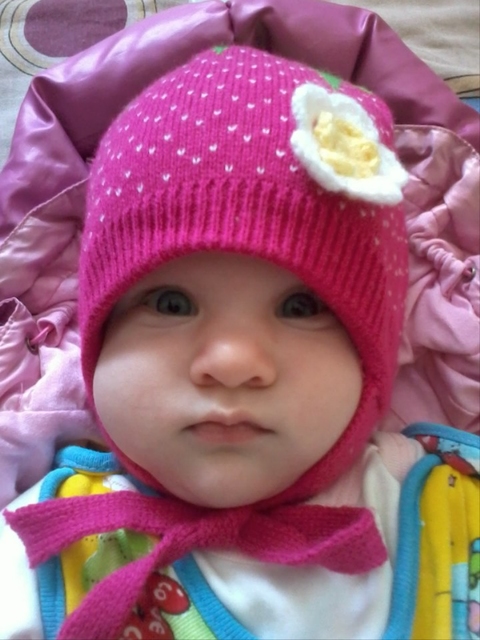Не смеётся в голос,только громко улыбается,любит всё хватать-руки тянет ко всему,любит очень наблюдать за старшей сестрёнкой.