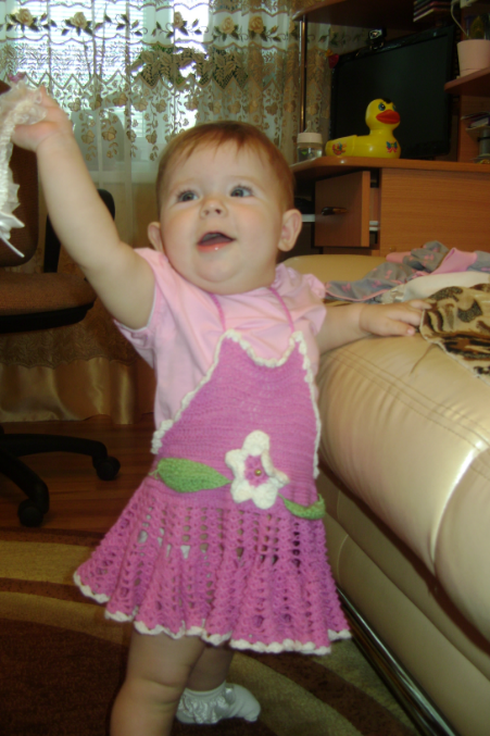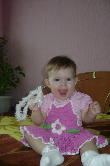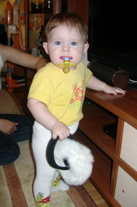 ХвастаемсяВот уже ровно 18 месяцев мы вместе с моей любимкой из них 9 месяцев у мамы под сердцем .Наша принцеска растет умненькой веселой девочкой радует маму с папой новыми умелками. И так что мы имеем на сегодняшний день.Активно ползаем ,встаем у опоры ,играем в ку-ку и ладушки,говорим ма-ма ,па-па,ба-ба,дя-дя,дай,на кошку говорим -мя,прислове бай-бай ложимся на подушку и говорим ба-ба.Кушаем почти все но не всегда с аппетитом,ходункии коляску по прежнему не любим,очень нравится мультик тин лав.уже вторую неделю пытаемся спать в кроватке но пока безуспешно(мама не выдерживает и берет к себе с сисей во рту спим всю ночь рост и вес пока незнаем так как к педиатру еще не ходили сильно переболели поэтому ждем пока утихнет эпидемия.ну вот пока и все что вспомнила что дабыла потом допишу.А теперь фотки моей зайки