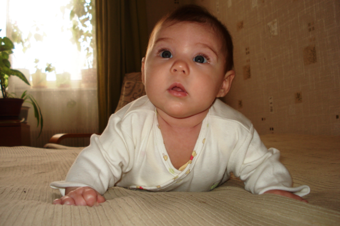 Физическое развитиеВот так мы выросли за 3 месяца... Любим особой любовью мамину сисю)) Трем глаза кулачками, когда хотим спать. Все время на животике, переворачиваемся на спинку с мамой, сама лишь разок)) Все время рвемся сесть и встать - и злимся, что не дают! Смеемся в голос, узнаем родных, хватаем и трясем погремушками, точным движением вытаскиваем соску изо рта, агукаем и издаем разные гласные звуки, тащим игрушки в рот, а также свой кулачок)) Плаваем с удовольствием в кругу при t=30 С по-Комаровскому - видно, ГВ и закалка дают о себе знать, пока ничем не болели, слава Богу. Пускаем слюни, зубов пока нет) Активная, любознательная, любит общение, одна только на игровом коврике может полежать, да и то недолго.