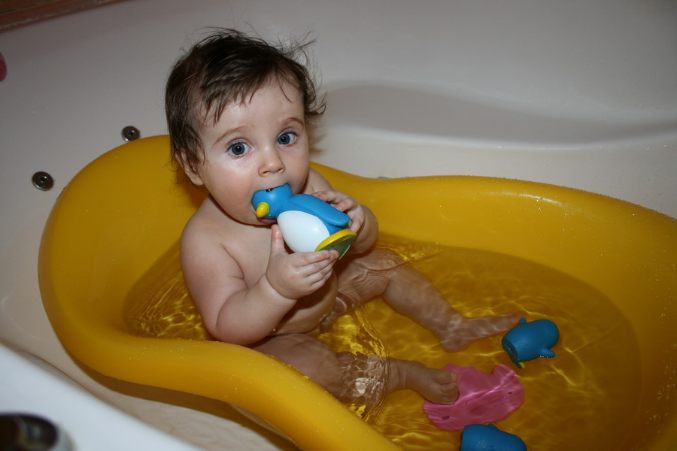 Вот так мы теперь купаемся, и то с трудом, пытается все время встать)) круг не признает никак))