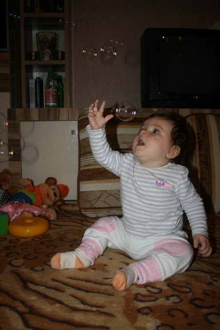 От пузырей она была в шоке)) Думала что за фигня, почему я не могу их поймать))