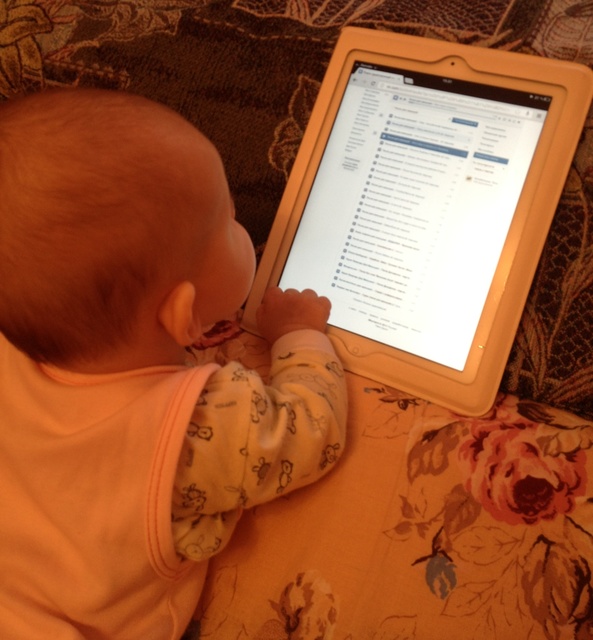 Интеллект ребенкаПеред тем, как пойти на кухню, готовить кушать Поленьке, я включила ей музыку на планшете и положила его в сторонку. Когда пришла, то увидела такую картину ----->