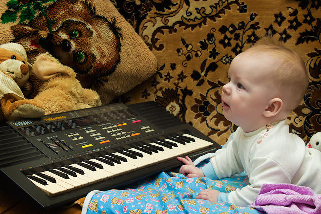 Да, даже если бы не было фотки я вам поверила у на тоже самое, а еще пару дней назад мы были в гостях у тети( тетя мызыкант) и положили на диванчик маленький синтезатор, ой как же ему понравилось нажимать на клавиши особенно удавалась нота - ФА. Пришлось тете вподарить нам клавиши!