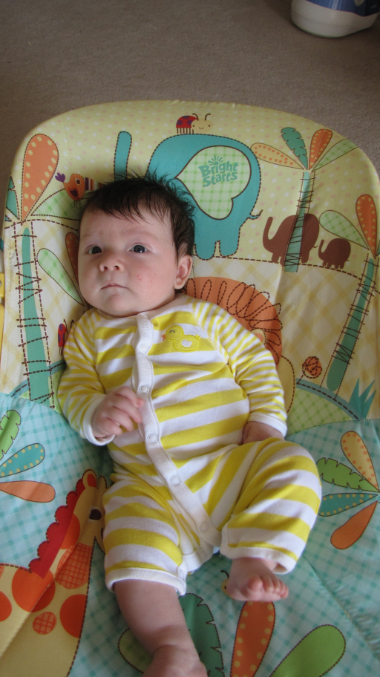 ЗнакомимсяВот моей ласточке уже почти 2 месяцаРастет моя прелесть,уже весит почти 6 кг))Сколько точно не знаю(к врачу как раз на осмотр через неделю)Иногда капризничает, а как же без этого)))Но в основном крики по поводу-хочеться спать,а заснуть не может почему-то,но это днем в основном, или если голодная! Ежедневно делаем с ней зарядку,но больше 10-13 минут не получаеться,начинает вредничать.Может устает...на животе вобще лежать не любит-максимум 5 минут и все.Уже месяц плаваем с кругом в ванне, последние дни начала добавлять в воду немного морской соли с запахом лаванды,красотка вроде не против)) Правда когда достаем ее из воды она всегда начинает ТАК кричать..как будто мы ее убиваем! уже и полотенце грели-не помогает.((Пару раз в неделю купаю ее с рамашкой и чередой,она потом так пахнет!!Вобще правду говорят,маленькие детки пахнут как то особенно)) А еще,вот оно,самое радостное!!- моя бубуська наконец то уже как недели 2, начала мне улыбаться,обожаю эти моменты!!!!))ну и разговаривать потихоньку начинает-аукает мне по утрам))) Гулять ходим почти каждый день по 2-3 часа,правда последнюю неделю ветер такой сильный что и не погуляешь особо(( А еще,муж смееться,называет ее-мой маленький радар))когда едем на машине,если скорость 50-60км/ч-все нормально,только сбрасывает скорость-начинаються капризы))Вобщем вот такая наша Жасмин!))