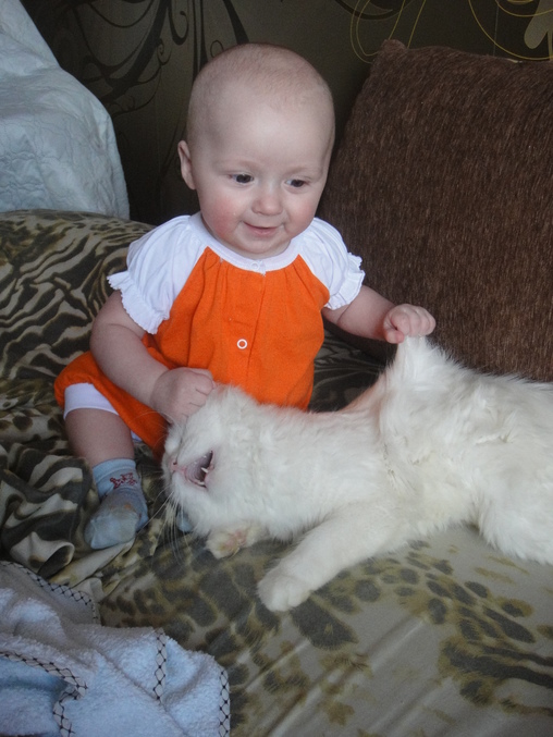 Вот так как выглядит Ваш кот, выглядят папино, бабушкино, особенно мамино лицо и волосы.. Вот как объяснить 8-ми мес что не льзя? пробывала стукнуть слегонца по ручке, так он ржет..