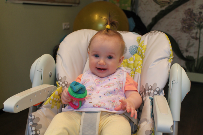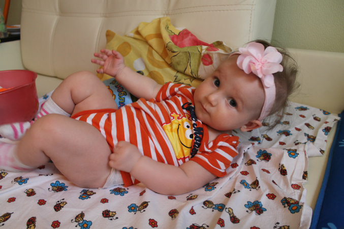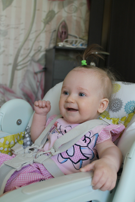 Хочу сказать, что моя дочь не торопыга, это я к тому, что мы еще сами не садимся, не ползаем (только раскачиваемся на карячках) и не встаем, как некоторые детки нашего возраста. Зубов тоже нет. Зато мы научились кататься "колбаской" в разном направлении с бешенной скоростью, так мы достигаем любую намеченную цель)).