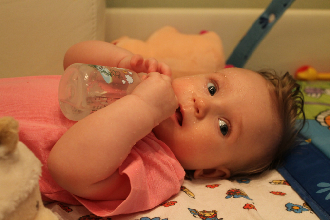9:00 подъем, умываемся прохладной водичкой, меняем памперс, промываем носик, переодеваемся