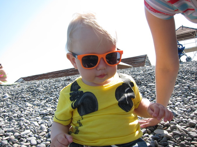С очками вообще интересная штука) Дома одеваем, он их сразу снимает, но улыбается-смеется, нравятся ему. Сегодня во дворе одели, солнце сильно слепило, и давай его нахваливать: Какой Лева молодец, как Леве красиво в очках!!! Так он разважничал и не снимал их наверное минут 20 точно. Потом мы в машину сели и я их сама сняла. А на море приехали, ни в какую, снимает и все, ничего не помагает. Вот как то так пока))) Но я думаю привыкнет. Ну или хотя бы ради таких вот фото стоит купить)))