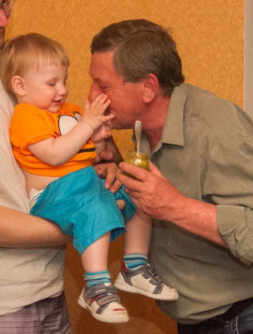Приехали родственники, а с ними маленький мальчик (3 мес) Елисеюшка, к которому Петя меня ревнует, если я его беру на руки и играю. Маленький ревнивчик моментально начинает целоваться, обниматься )))))