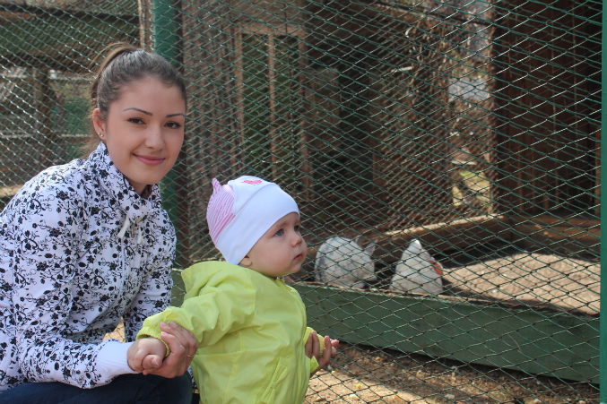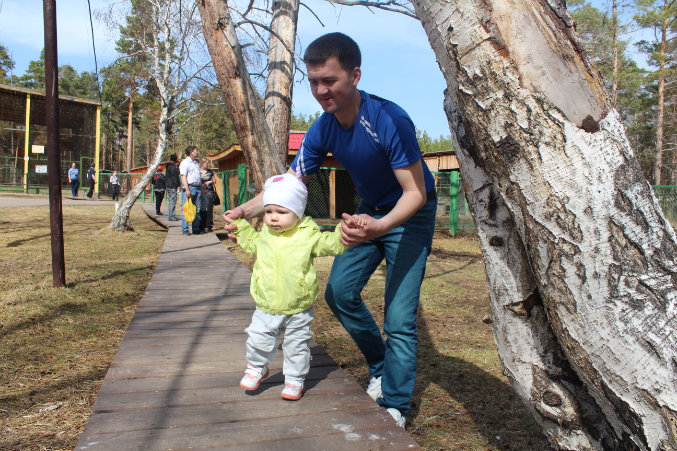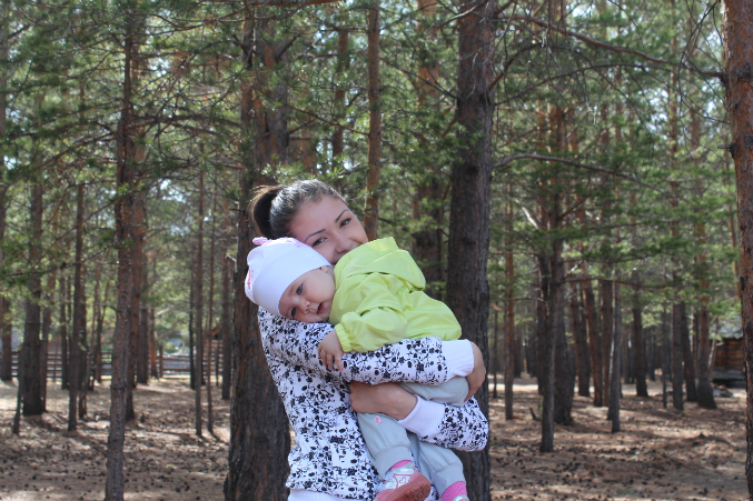 Иришка уже совсем большая девочка стала, растет и развивается не по дням, а по часам!!! Как 6 зуб вылез месяц назад так и тишина....! Ходит уже сама (шагов по 8-10), но все равно немного побаивается и постоянно ищет опору в виде пальчика мамы или папы))) Наша маленькая "обезьянка" все за нами повторяет))) Говорит мама, папа, баба, деда, дай, отдай, на, цветы, диски (ватные), джинсы, ррррыыыы (медведь)!!! На праздниках ездили на природу, впечатлений было море!!! Небольшой зоопарк, камешки, шишки, деревья большие и т.д. А вот и мы: