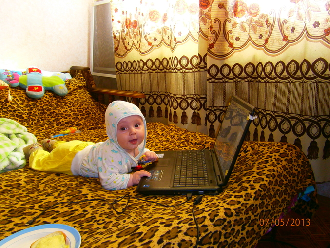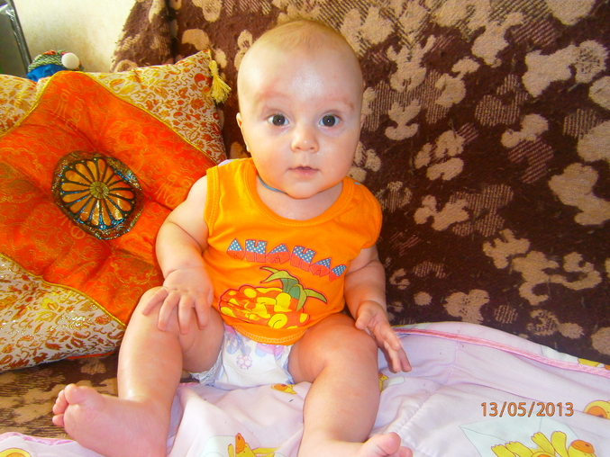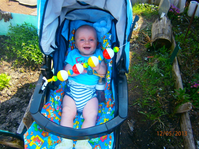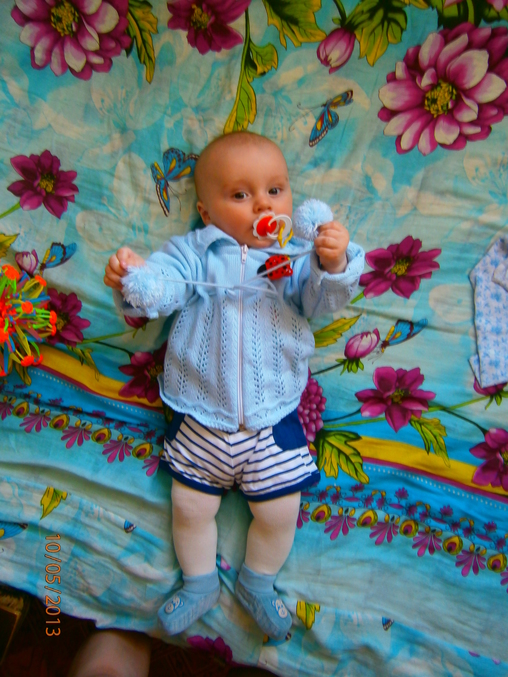 Рост, весВесна...весна..обо всем на свете забыла..а мальчик мой растет.Итак нам 11 дней назад исполнилось 5 месяцев.Переворачиваться так и не научился и наша глобальная проблема под названием зубки так и не решилась!У Ванюшки до сих пор напухшие десенки и он чешит их и ноет...капризничает..побыстрее бы хоть один вылез..по легче может быть станет.Кушаем кашку(гречку и рис безмолочные) и овощи(кабачки,цветную капусту,брюссельскую капусту и броккли) вот 4 день даю грушевый сок и пока ттт..все спокойно.Даже забыла когда мазались от аллергии в последний раз..взрослеет мой малыш и как то алергия поутихает...раньше стандартно 3 раза в день мазались..может другая пища этому причина.На приеме были 7900г(+600г) и 67см(не изменились).Что еще о нас рассказать?гуляем целыми днями и вечерами.Ванюшка радует папу и маму!Пытается чуть чуть ползти..прям как рыбка.на пузе ерзает,руками-ногами машет пытается оттолкнуться и никак..Чуть-чуть сидим сами..Пересели кушать в стул,кушаем все с ложки.Вот несколько фото для отчета: