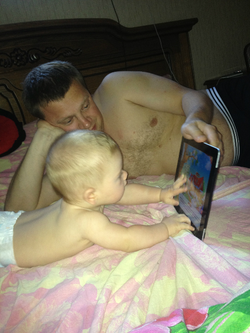 Любим играть в ку-ку, козу -дерезу, играть с отражением в зеркале.Читаем книги.Очень любим , когда папа приходит с работы, знает что сразу возьмет на руки и только посмейте замешкаться , сразу же будет много обиды. Убрали ванночку и стали купаться под душем. Очень нравиться нам сей процесс.Очень много времени проводим на берегу Дона. Обожаем идущие мимо кораблики. Мой любимый пират.)))