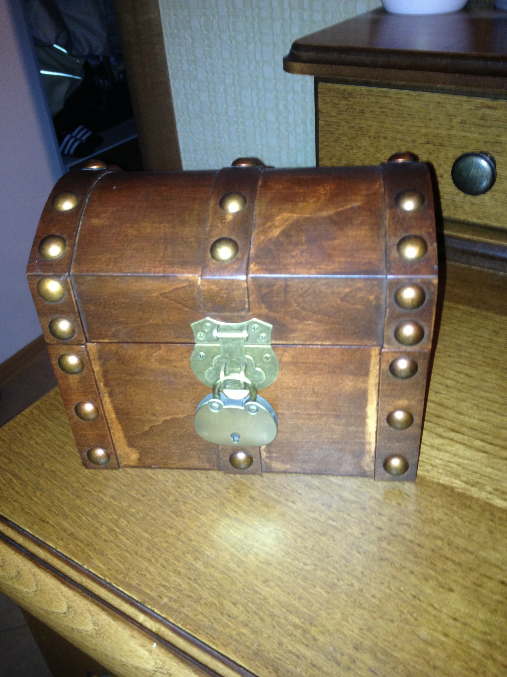 Вчера отмечали наши 6 месяцев и в качестве главного блюда была уха, которую Гешка съел с большим удовольствием. Папа подарил нам сундук с пиратскими сокровищами.