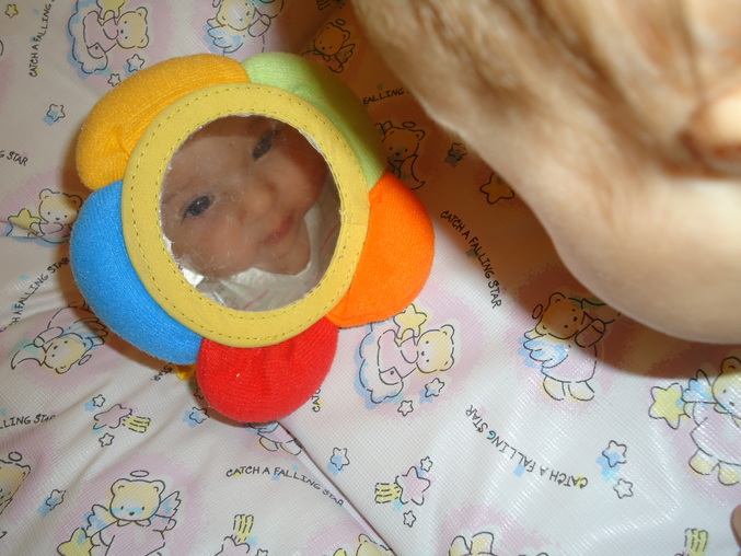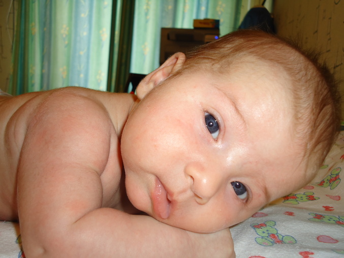 Девочка у меня очень общительная, лепечет, улыбается, подпевает когда песенки ей поешь. Следит за моими губами когда я с ней разговариваю. Кушаем титю по требованию, соску ни в какую не хочет брать (я и не предлагаю, это бабушка пока с ней сидела без меня пыталась засунуть), зато пальцы, кулак начмокивает с удовольствием (пока титьку не даш). С огромным интересом наблюдает за мобилем, может полчаса на него глазеть, агукать а потом заснуть. На развивающем коврике с удовольствием занимается когда выспавшаяся, сытая и сухая. Памперсы одеваем только на прогулку и на ночь, очень уж жалко парить попку в такую жару, носим дома трусики. Ночью у нас совместный сон с тремя кормлениями. А еще на улице стала меньше спать. Просыпается и глазеет по сторонам, коляску разглядывает и то что из коляски виднеется. Научилась переворачиваться на бочок и пытается переворачиваться на пузик, правда пока не получается без моей помощи, но кряхтит, старается)) будем тренироваться дальше) 3 раза в день у нас гимнастика, 2 прогулки, вечером купание и массаж.
