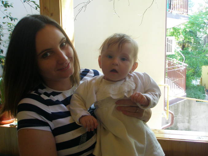 прорезался 3 зуб, режится 4((бедная Сашка))