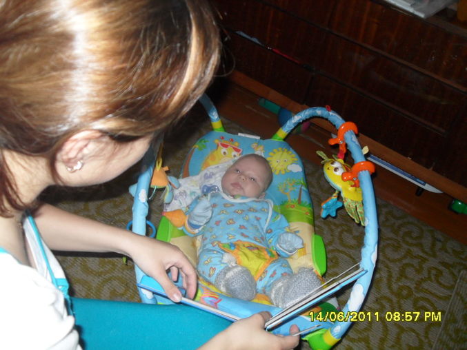 Еще мы с шести месяцев занимаемся по букварю и по чтению с пеленок. Вот это считаю очень хорошей находкой. Сына после занятий как с ручника сняли. Там суть метода заключается в быстром показе и озвучивание текста. Не думала, что простой показ карточек так влияет на развитие.