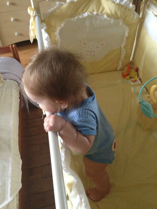 Сегодня встал сам в кроватке!!!! Пока я утром натягивала халат и искала телефон. Кряхел-кряхтел, потом затих, поворачиваюсь, а он стоит и бортик грызет))))