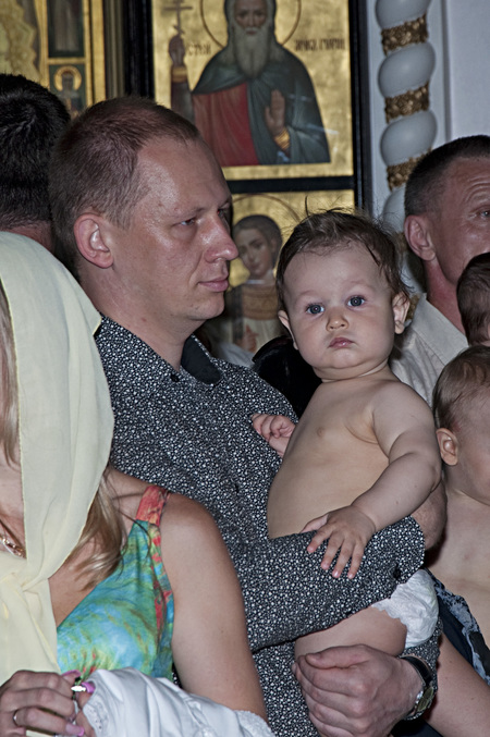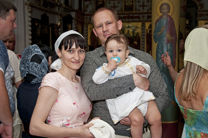 Крестили в Церкви Святого Пантелеймона Целителя в г. Ростов-на-Дону. Малыш себя вел как настоящий мужчина. Заплакал немножко и то, только в конце - спать ему уже час как пора было! А когда опустили в купель, сынишка начал по ваодичке ручками хлопать. Наверное думал, что купать его будут.