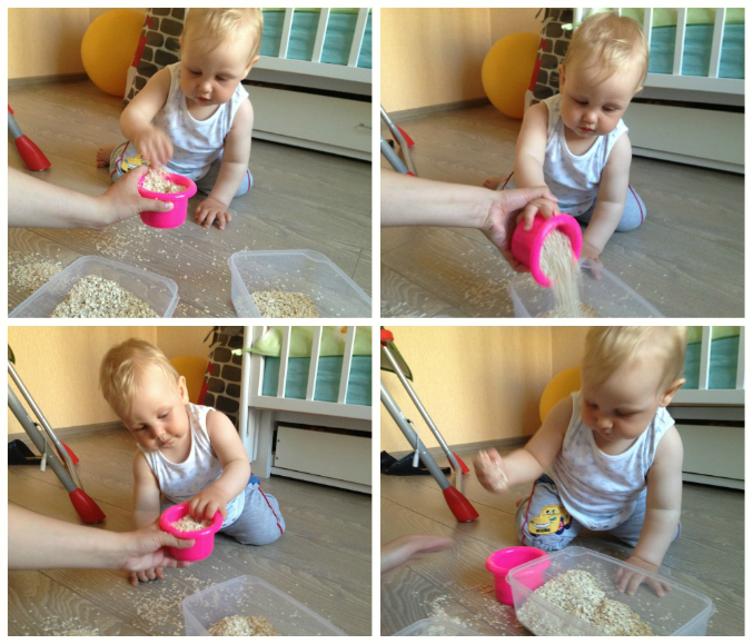 Собирает пирамидку, стаканчики, детское лего. Сортер осваиваем, но конечно с моей помощью попадает. Детская мозаика тоже в процессе освоения. Вообще любит сидеть ковыряться во всяких головоломках.