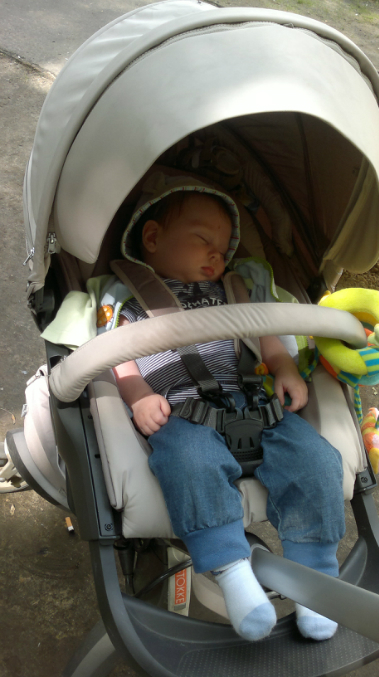 Зайцы мы большие. Сегодня были у педиатра и делали 2ую АКДС. Вес - 8500, рост 70,5. Решила я Пентаксим делать, и ходить в платный мед центр. Еще врач сказала, что если у нас проблемы со стулом (запоры), то нужно вводить уже прикорм (мы на ГВ). Начать с кабачка. Я хотела начать вводить с 6 месяцев, но раз такое дело... Можно попробовать. Еще он у меня воду так и не пьет, на улице жара(( Бутылку мусолит и все, из ложечки даю, пару ложек выпьет, потом играется, выплевывает) Сегодня попробую, куплю поильник.. Хотя, думаю тоже баловаться будет. Из умелок: переворачиваемся только на живот (около 4-х месяцев начал), играет и игрухами, все держит, хватает, пытается ползти, бормочет что-то на своем ) Люблю его безумно!!! И немного фоток :)