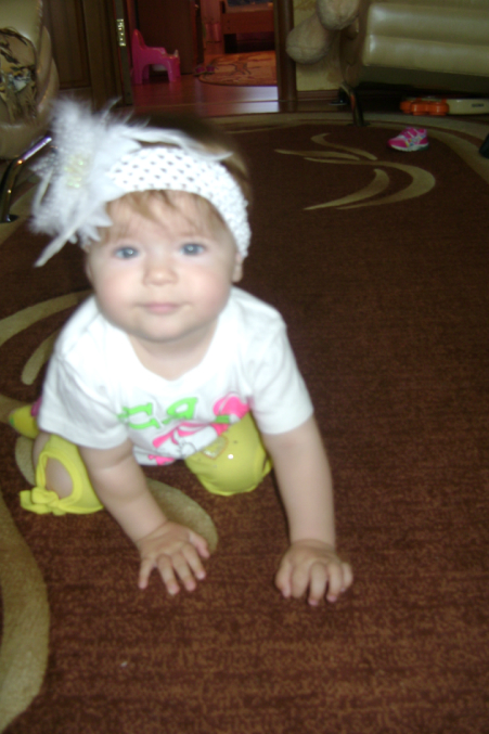 - 74см. Наши умелки киваем пока пока,машем ручкой привет играем в мячик буцаем его ножкой ,говори дай ,на,папа,мама,баба,дядя,няня кися -мя.показываем как гудит машина ,дует ветерок,показываем где глазки,носик,ротик.продолжаем ходить держась за мебель сама передвигается короткими перебежками на небольшое растояние бегаем за ручку сама ходит редко ленится Кушаем все недавно попробовали персик и клубнику ей очень понравилось.Спим попрежнему плохо .начали активно кусаться мама вся в синяках.очень любим провода и розетки