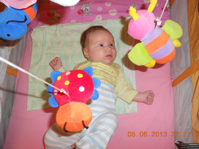 В кроватке играется