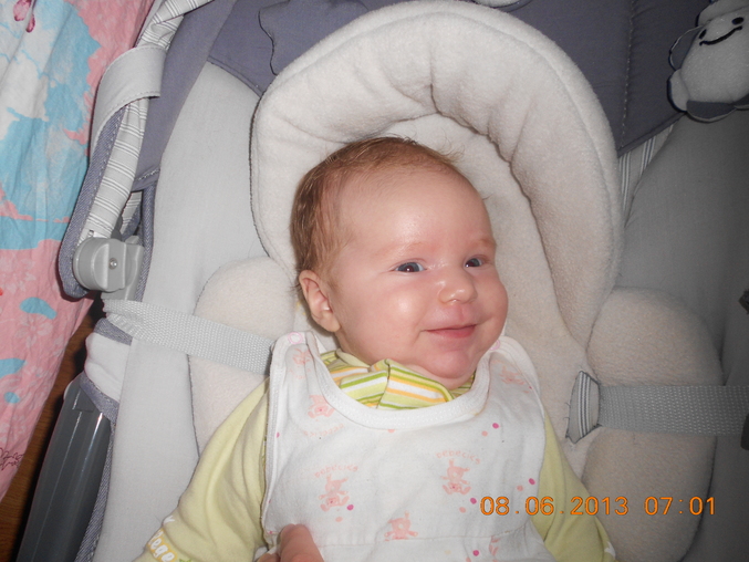 вообще растем, 5 кг уже, каштановенькая да кудрявенькая)))