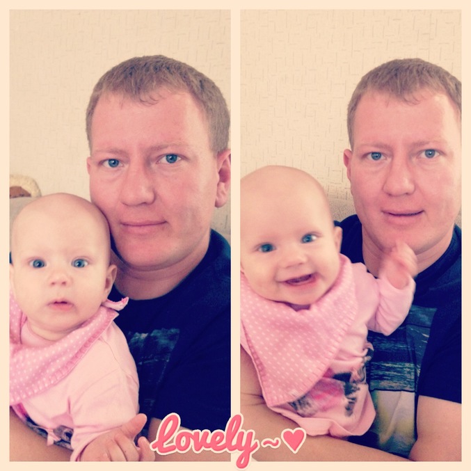 Любит трогать папу за лицо(наверно нравиться как наш папик колиться,редко гладко выбрит))))