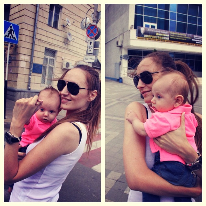 Что мы имеем на сегодняшний день: вес примерно 6700 рост 66 см, очень активный, головку держит отлично, переворачивается на животик и обратно на спину... Ночью вообще вертеться как взрослый )) агукает и улыбается) боится щекотки и хохочет когда я его зацеловываю)). Очень хочет ползти- ноги сильные, а руки слабые и вот так по пластунски и ползет)) попу задирает отталкивается и на грудной клетке продвигается )) когда голову устает держать, тогда щекой продвигается и она потом вся красная)), руками бьет по всем интересующим предметам, хватает их периодически, щипается))).Один играть не любит, надо либо разговаривать с ним, либо на ручках носить ( именно носить а не стоять или сидеть на месте). Максимум 15 мин может полежать на развивающем коврике... и то, как правило, 5 мин трогает игрушки, потом переворачивается и пытается ползти, быстро устает и начинает хныкать. Так же мы уже летали на самолете и нам очень понравилось). Любит купаться в круге , разбрызгивать воду и быстро быстро барахтаться. Самое не любимое это чистка носа и ушей, а самое любимое - это сися )) пока я отстегиваю лифчик он бьет рукой либо тянет за футболку и издает смешные звуки типо подгоняет меня )) 23 мая мы покрестили нашего малыша ). В общем вкратце все)) Безумно люблю своего сыночка ! Спасибо судьбе за него! Ну и фото...))...