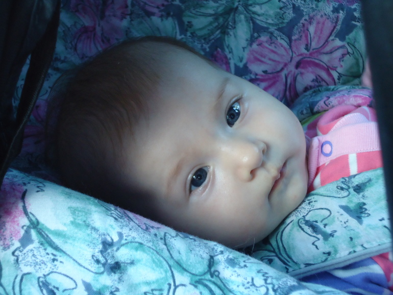 Моей крошечке, любимой девочке уже 3 месяца. Очень подросла, повзрослела) Были у педиатра, вес 6400, рост 62см. Сделали прививки АКДС и полиомиелит. Чешутся десны, видать зубы на подходе. Бывает засунешь ей палец в рот, почешешь, а она агукает и улыбается от удовольствия)) Игрушки пока интересуют в основном висящие, их хватаем и в рот, а те что просто лежат если только случайно цепляет. Купила Сашульке хваленую жирафа Софи, пока интереса не вызвала, может позже... Зато мы уже переворачиваемся во всю со спины на животик, так и спим на животе, чему очень удивилась невролог...