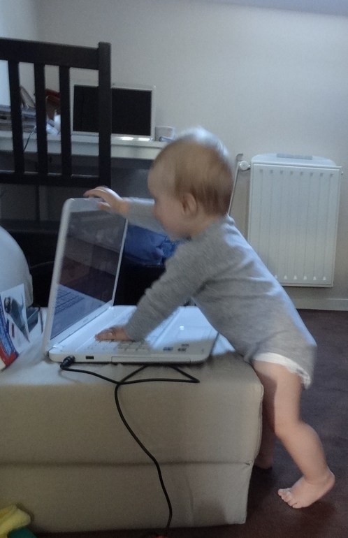 Встал у опоры и переступает. Весело) Правда, приходится теперь сидеть с ним на полу - а то он встает теперь все время, не ровен час рухнет, назад еще не умеем!